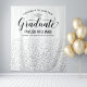 Celebrate your grad in refined style with this silver confetti graduation party backdrop! The design features "Congrats to Our Graduate" in elegant black script, a silver grad cap, and personalized fields for the graduate's name and school above a cascade of shimmering silver confetti dots on a white background. Customize all text for a polished celebration centerpiece. Perfect as a photo wall, dessert table, or party focal point.