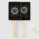 A graduation hand fan. On the front it says Congrats Graduates, Class of 20xx and on the back the graduate's name and school and class of 20xx, written in a gold colour. Designed with a black graduation cap surrounded by a semi-transparent white circle. Black background with gold lettering is simple yet stylish.