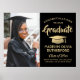 Add a personalized touch to a college or high school graduation celebration with a custom photo black and gold 18"x24" poster. The picture and all wording on this downloadable sign template are simple to customize, and colors can be changed with the Zazzle design tool. The design features a faux foil mortar board cap, elegant classic typography, stylish modern calligraphy, and one photo of the graduate, such as a senior picture or image from the commencement ceremony. Please note that gold is printed color, not foil. This printable graduation poster is an elegant way to welcome friends and family to a special day celebration. Congratulations to the graduate!