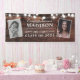 Congratulations to the grad! Celebrate the occasion with this elegant rustic wood photo graduation banner with string lights and space for 2 photos.
