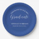 These modern, elegant stylish graduation party paper plates feature graduate in a beautiful and eye catching script typography on a beautiful shade of royal blue background. Personalise this product by adding the name and school or your favourite quote. Classy and easy to personalise! Celebrate the graduate's accomplishment in style. Matching graduation party supplies available. Congratulations!