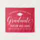 Make your grad party pop with this bold red graduation backdrop! The design features "Congrats to Our Graduate" in flowing white script, a grad cap icon, and personalized fields for the graduate's name and school. Customize all text to match your school colors and celebrate in vibrant style. A festive focal point for photo walls, dessert tables, or party entrances.
