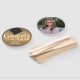 Fun gold gradient background with black mortarboard and script text. Reads "Congrats to our Grad" Year of graduation option with custom name. Back of fan has a full cover photo option. All text can be changed and adjusted.
