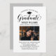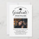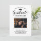 Elegant graduation announcement card and graduation party invitation congratulates and announces your grad in style! Features black grad cap, "Graduate" in script, and modern custom text that can be personalised with the graduate's name, school, and party details. Add a favourite photo of the grad. Note, the neutral grey accent colour on the back of the card can be changed to white or another colour that coordinates with the photo or party colours.