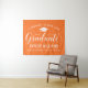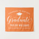 Elegant graduation party backdrop sign congratulates and celebrates your grad in style! Design features a grad cap, "Graduate" in script, and modern custom text that can be personalized with the graduate's name and school. Orange and white colors can be customized.