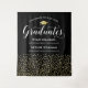 Elegant black graduation party backdrop two graduates features a faux gold foil grad cap, "Graduates" in white script, and modern custom text that can be personalised with the graduates' names and schools. A pattern of gold falling confetti dresses up the background - perfect party prop for guests to stand in front of for pictures with the grad! Multiple Sizes are available.
