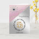 This elegant card features a combination of pearls, rose gold and silver pattern with a diamond sapphire gem star and a unique gold glitter number.