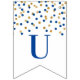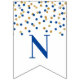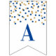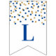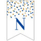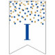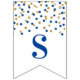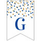 Congratulations banner with dark blue and gold confetti pattern. Perfect for graduations, retirements, baby showers, bridal shower and more.