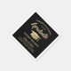 Add an elegant personalised touch to college or high school graduation party decorations with these custom black and gold paper napkins. All text is simple to customise. Design features a black background, faux foil mortar board cap, stylish modern typography, and handwritten style script calligraphy. Please note that gold is printed colour, not metallic foil. Congratulations to the graduate!