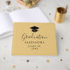 Celebrate your graduate and identify the party location and welcome guests with this modern display sign in black and white featuring a modern handwritten script typography Congratulations accented , graduation cap and personalised with your custom text, graduate's name, school and class year against white background. ASSISTANCE: For help with design modification or personalisation, colour change,