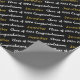 This black wrapping paper has a text template you can edit. You can change the faux (not foil) gold text to show your graduate's name. The white text shows the year the student is graduating (shown: Class of 2024) and a custom message (shown: Congratulations). Congratulations and Class of 2024 are in an elegant script, but the graduate's name is not in a script. The text forms a pattern of the graduation wrapping paper.
