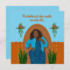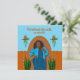 This design features a curvy African American beauty with a blue jacket and dress on a terra cotta coloured wall with plants and blue background and the quote, "She believed she could, so she did".