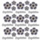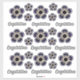 Twenty-one blue and gold fractal art floral designs in two sizes are scattered across this sheet of stickers with nine "Congratulations" texts. These stickers can be replaced with your own cutout photo of a flower to make personalised stickers or the words can be changed to your own message. If you need help personalising, please contact me at jen@jenaleefamilystorykeeper.com