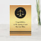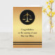Congratulations card for the opening of a new law office. The design is a faux gold, with a circled image of a set of scales. Perfect design for the purpose.