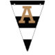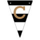 A black and gold striped bunting banner design with the word "congratulations" that can be personalised with your wording and colours.