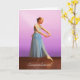 On this congratulations card for a dance recital, all text fields are text templates and easily changed or deleted. A demur young ballerina strikes a graceful pose on a background that ranges from pink to purple. Her head is slightly bowed and there are flowers in her hair. She is wearing a flowing blue dress. Customise by adding your own caption to the image.