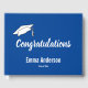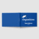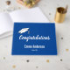 This deep blue and white graduation guest book has a white graduate's cap in the upper left corner. Display text says 'Congratulations' in a white script. You can personalise the guest book with the graduate's name in white text. You can even add the class year under the name. Also, there's text for the graduate's name and class year on the spine. All text can be edited or deleted.