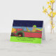 Congratulations for a Best Friend on her new car. Illustration of a vintage retro red car with green trim, leather wrapped steering wheel, and spare tire attached to the side. A female dressed in camel's hair coat, green and yellow hat and long yellow scarf. She drives under a star filled night sky. Art, image, and verse copyright © Shoaff Ballanger Studios.