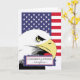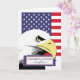 Congratulations for a neighbour on graduating from Basic Training. Patriotic paper greeting card with bald eagle, American flag, and small framed text element. Patriotic theme. Image and verse copyright © Shoaff Ballanger Studios.