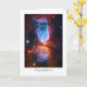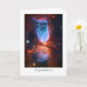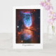 Galaxies, Stars and Nebulae series A gorgeous greetings card featuring a star forming region in Constellation Cygnus (The Swan). This Hubble image shows a dust-rich, interstellar gas cloud with a new-born star in the centre of the hour-glass shape. The glowing blue of the hydrogen in this nebula is due to the jets being emitted from the forming star as dust falls into into it and this causes the heating and turbulence of the hydrogen. The star, known as S106 IR, is reaching the end of its birth and will soon enter the much quieter period of adulthood known as the main stage.
