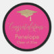 Congratulations Gold Graduation Cap Hot Pink Classic Round Sticker