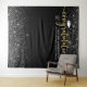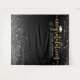 Elegant graduation party backdrop sign celebrates your grad in style! Design features a grad cap, "Congratulations" in modern faux gold foil script, and modern custom text that can be personalized with the graduate's name, class year, and school. Includes a border of sparkling silver and white confetti. Black background color can be modified.