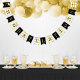Celebrate your graduate with this glamorous graduation party bunting garland! The design features a grad cap on the lead pennant followed by alternating black stripes and gold polka dot flags spelling "Congratulations." Hang across a dessert table, photo wall, or party entrance for a luxe focal point at any high school or college graduation celebration. Letters and colors are fully customizable.
