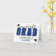 Celebrate this special milestone with a stylish and timeless graduation card. The front features “Congrats Grad” in a bold mix of blue and black typography, combining elegant script with strong lettering for a striking, celebratory look. Below, there’s space to personalize the card with the graduate’s name, school, and “Class of 2025” (or any year), making it a meaningful keepsake. Two graduation cap icons add a classic, festive finishing touch.