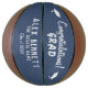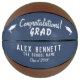 Congratulations Grad Graduation Cap Basketball. White text on a blue background and 2 white graduation hats. A great gift and keepsake basketball for a graduate who loves sports.