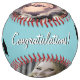 Congratulations Grad Mint Blue 2 Photo Graduation Softball. Mint blue background, graduate cap and 2 photos. Add your photos, graduate name, school name and year. You can change any text on the softball. This custom and personalised softball is a perfect gift for a graduate.
