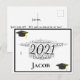 Unique, one of a kind card for that special graduate. Word Art in the shape of a graduation cap says Congratulations 2021 Graduate in modern typography . Background can be customized with school colors and personalized with graduate's name. Back of postcard has room for your own message.