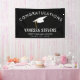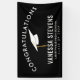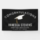 Modern graduation banner featuring bold white lettering with an black background. The design features a white graduation cap with the phrase "Congratulations ". Personalise navy graduation banner by adding the graduate's name, school name, and graduation year. For a more custom look, change the background to your school colours. The graduation poster is perfect to use for your high school or college graduation party!