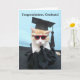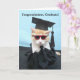 Bubba in a white collar, black tie, black robe, graduation cap and shades. The humourous text on the front is simply "Congratulations, Graduate!" Inside: "They say it's a DOG-EAT-DOG world out there. But a COOL CAT like you shouldn't have any problem!" You can customise and change the font.