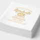 Add an elegant personalised touch to a college or high school graduation party with custom embossed foil paper napkins. All text on this template is simple to personalise. The white and gold real metallic foil design features a mortar board cap, stylish classic typography and modern script calligraphy. These unique napkins add an elegant customised touch to celebration decorations. Congratulations to the graduate!