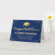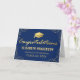 Modern congrats graduate greeting card featuring a stylish navy blue background that can be changed to any colour, elegant gold sparkly glitter, a gold foil mortarboard cap, and a congratulations template that is easy to personalise.