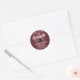 Add an elegant personalised touch to college or high school graduation invitations, announcements and party favours with stylish custom maroon and white round stickers. All wording on this template is simple to customise for envelope seals or thank you tags. The modern design features a brushed dark burgundy red background, black and white mortar board cap, stylish script calligraphy and classic vintage typography. These stickers add a unique finishing touch to a graduation celebration. Congratulations to the graduate!