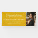 Congratulations to the graduate! This yellow graduation party banner features a place for a photo of the grad along with a script text "congratulations" and custom text that can include name, school, year and future plans. Makes a great graduation sign to celebrate your senior and works for a high school graduate or college graduate. The default colour of this graduation banner is a golden yellow, but more colours are available in the collection by Lea Delaveris Design.