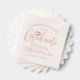 Add an elegant personalised touch to a college or high school graduation party with pink and white custom embossed foil paper napkins. All text on this template is simple to personalise. The rose gold real metallic foil design features a mortar board cap, stylish classic typography and modern script calligraphy. These unique napkins add an elegant customised touch to celebration decorations. Congratulations to the graduate!