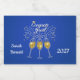 Graduation design. Congratulations graduates wine label - sparkling wine glasses with fizz on a royal blue background
