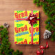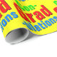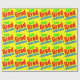 A colourful wrapping paper with Con-Grad-ulations written in green, red, and blue.