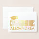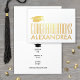 Congratulate the graduate in style with this elegant real foil graduation greeting card. All text is simple to customize. The black, white and gold foil design features modern minimalist typography, personalized name, and greeting inside that reads "DREAM big SPARKLE more SHINE bright CONGRATULATIONS." This card is a stylish and chic way to celebrate the graduate's success and accomplishment. For a unique finishing touch, sign interior with a metallic gold pen.