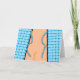 Funny Congratulations on Colonoscopy, Open Hospital Gown paper greeting card. Illustration of an open hospital gown revealing someone's backside. Gown is in a blue and blue-green dotted patterned fabric. Image and verse copyright ©Shoaff Ballanger Studios.