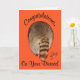Congratulate someone who is happy about their divorce with a humourous card featuring a racoon's butt with a pretty flower design on a orange background.
