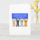 Four different cartoon kittens holding up a blue sign that says 'Congratulations on getting into University'.