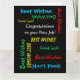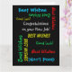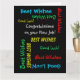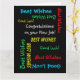 What a wonderful, fun greeting card from a group for a co-worker who got a new job or promotion. On the cover, your text repeats in different fonts and colours on a black background. Also easy to modify inside text, if desired. Default size is JUMBO, to leave room for lots of co-workers to sign. It's easy to change to standard size, if desired. All Rights Reserved © 2014 Marcia Socolik.