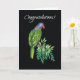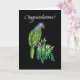 A beautiful macaw parrot is standing on a branch filled with green leaves. The beautiful colors of the bird stand out against the black background. Congratulations card is in order when someone adopts a parrot from a rescue shelter, making them both very happy!