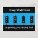 Congratulations on passing your driving test postcard, featuring UK traffic lights sequence.