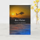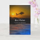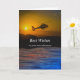 Congratulations on Retirement, paper greeting card with a dramatic scene of a helicopter flying over water with hills in the background. The sun is peeking through a hazy sky. Customise the text on the cover and inside as desired. Art, image, and verse copyright © Shoaff Ballanger Studios, 2022.