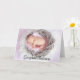 Adorable sweet baby girl sleeping soundly in a nest. Inside of card says, Dream Big, Little Girl."