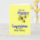 Congratulations on your New Home - I'm so Happy for you all text in blue and black with 3 cartoon bee's on a yellow background.